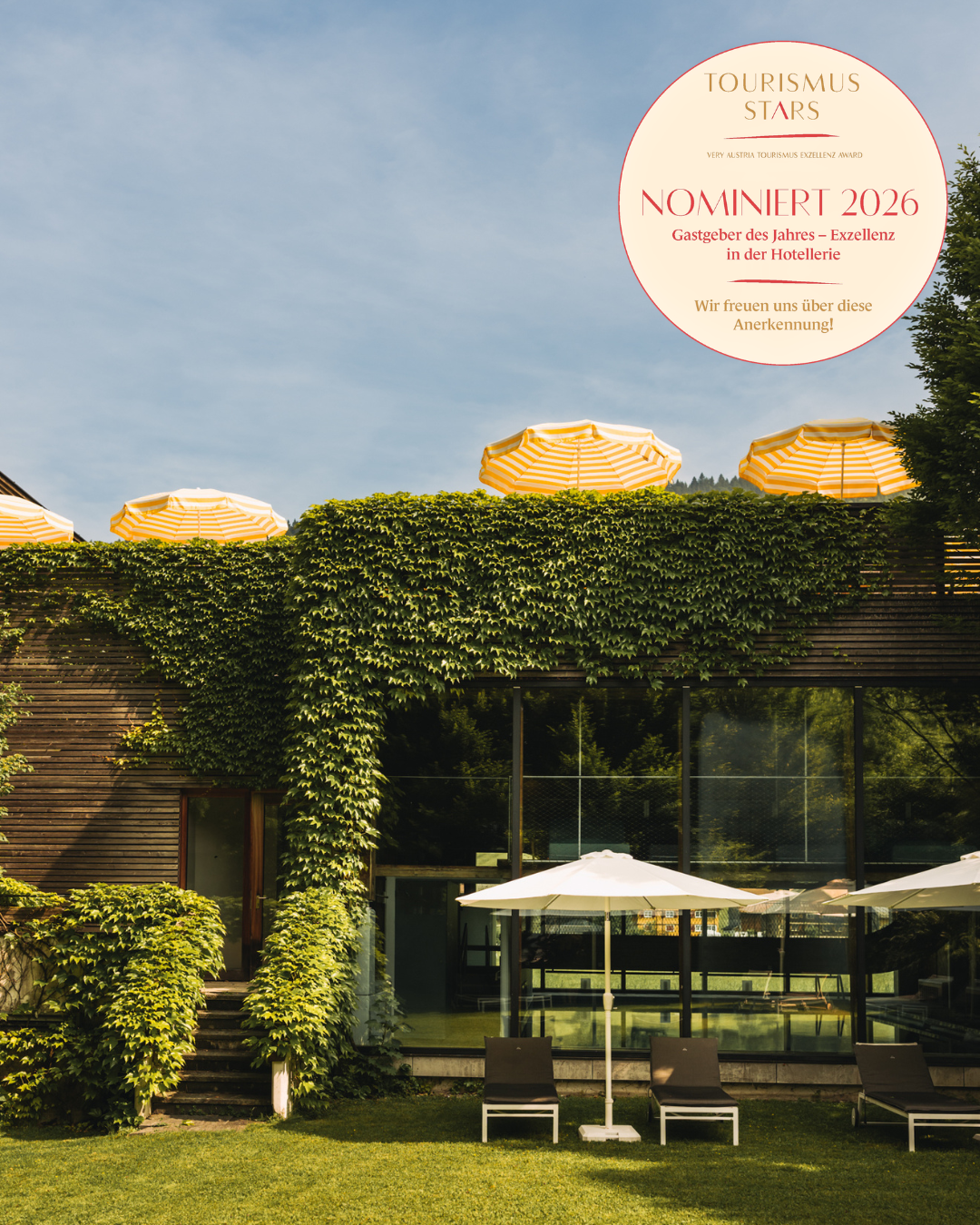 Für die Tourismusstars Awards 2026 wurden wir in der Kategorie „Gastgeber des Jahres – Exzellenz in der Hotellerie“ nominiert - wir freuen uns sehr über diese besondere Anerkennung.